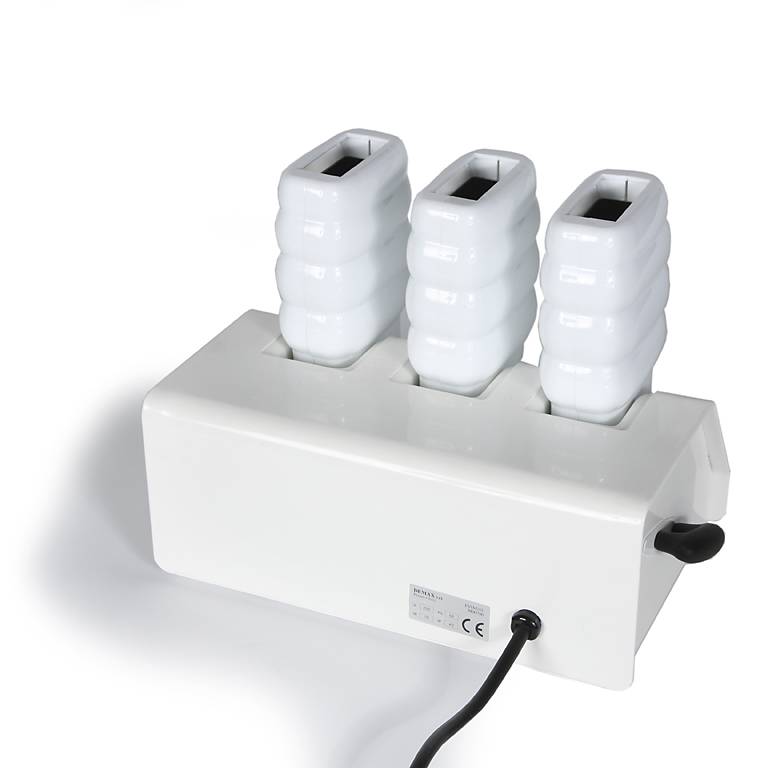 Het robuuste metalen harsapparaat ThreePro (kleur: wit) is een harscassette - verwarmer van Italiaans ontwerp voor het gelijktijdig verwarmen van 3 harscassettes. Met de TreePro harsverwarmer kun je dus gelijktijdig gebruik kunnen maken van verschillende harstypen of verschillende rollergroottes. Het basisstation van de ThreePro is gemaakt van metaal. De ThreePro heeft 2 handvatten voor het gemakkelijk verplaatsen. Topmodel van Italiaanse makelijk.
